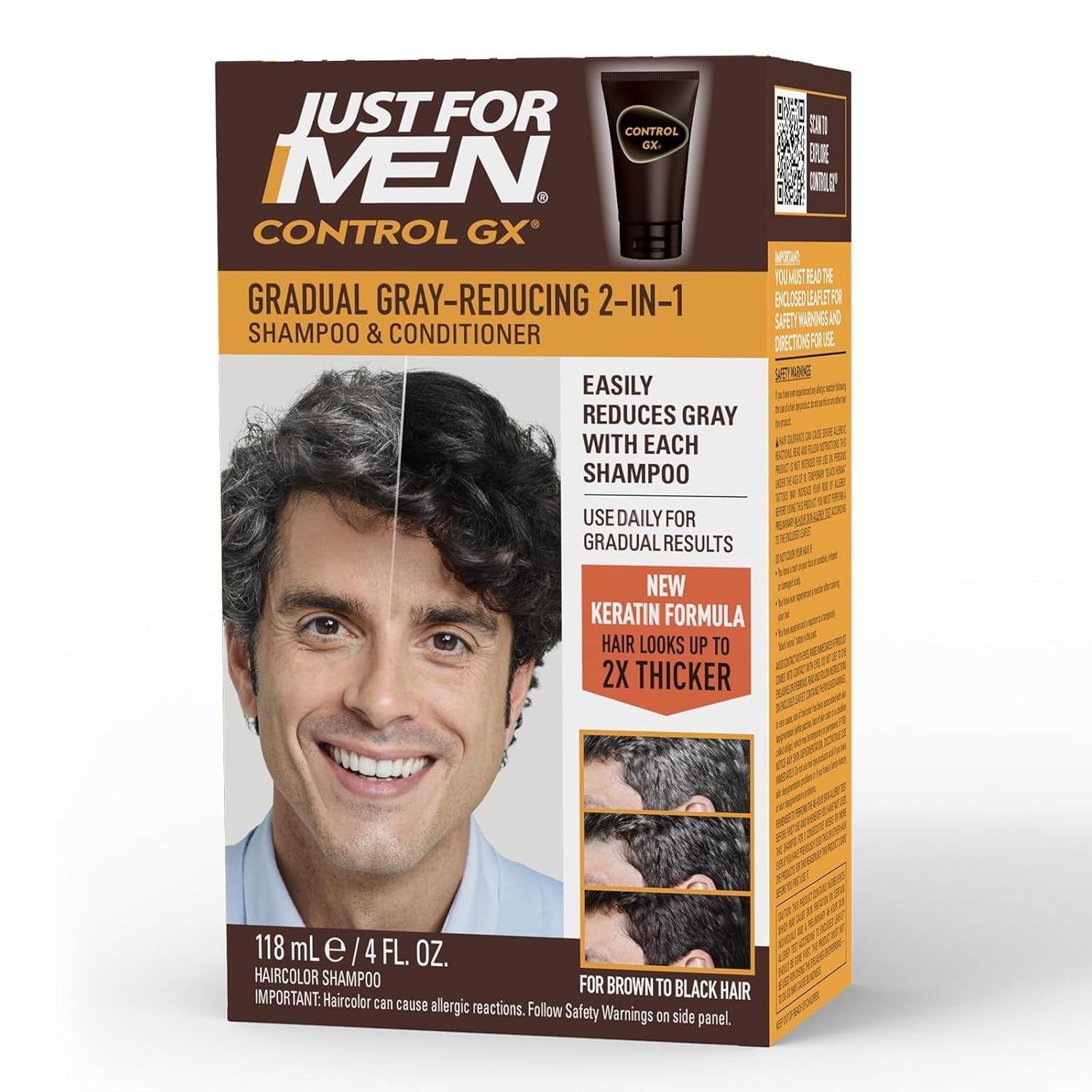 Control GX Grey Reducing 2-In-1 Shampoo and Conditioner, Gradual Hair Color for Stronger and Healthier Hair, 4 Fl Oz - Pack of 1 (Packaging May Vary)