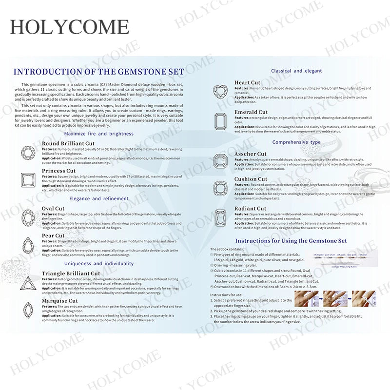 A: About the tools, there are many options for you to choose and we provide the free custom logo servises on the kit. What's more, you can purchase moissanite, lab-grown colored gemstones, lab-grown diamonds, and cubic zirconia loose stones from us. We also offer a range of jewelry. Additionally, we provide custom services for loose stones in specific sizes and for bespoke jewelry pieces.
