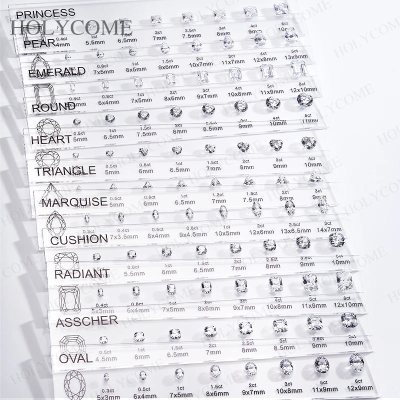Stone Shape: 11 Shape - Round/ Pear/ Oval/ Asscher/ Princess/ Triangle/ Heart/ Cushion/ Radiant/ Emerald/ Marquise