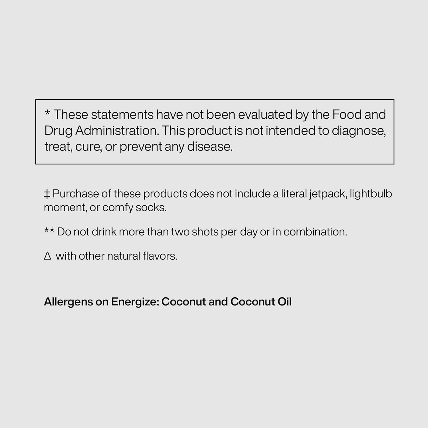 • ENERGIZE: An invigorating 2 FL OZ energy shot with a natural tropical flavor**, Ryde ENERGIZE gives you an energy boost when you need it*