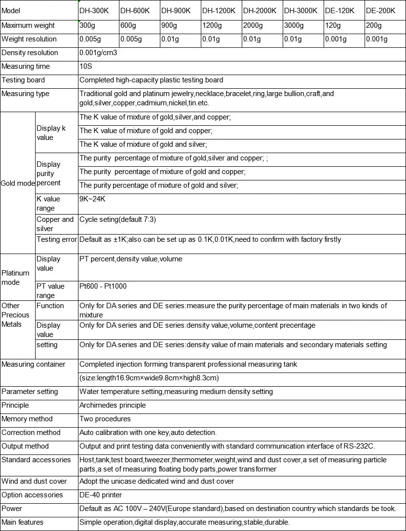 e)Multi-function;the purity of other precious metals can be measured.such as tin,copper,silver.etc.also it can be used as precision balance.