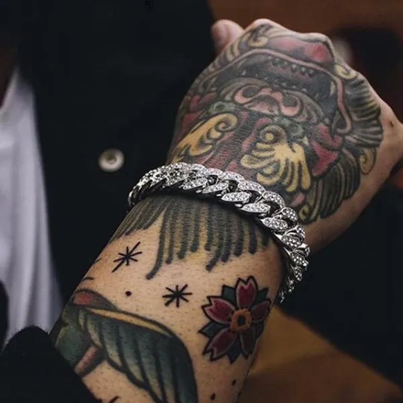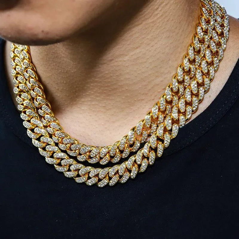 Fashion Gold Stainless Steel Hip Hop Jewelry Iced Out Diamond Thick Miami Cuban Link Chain Necklace Bracelet Watch Ring Jewelry Set