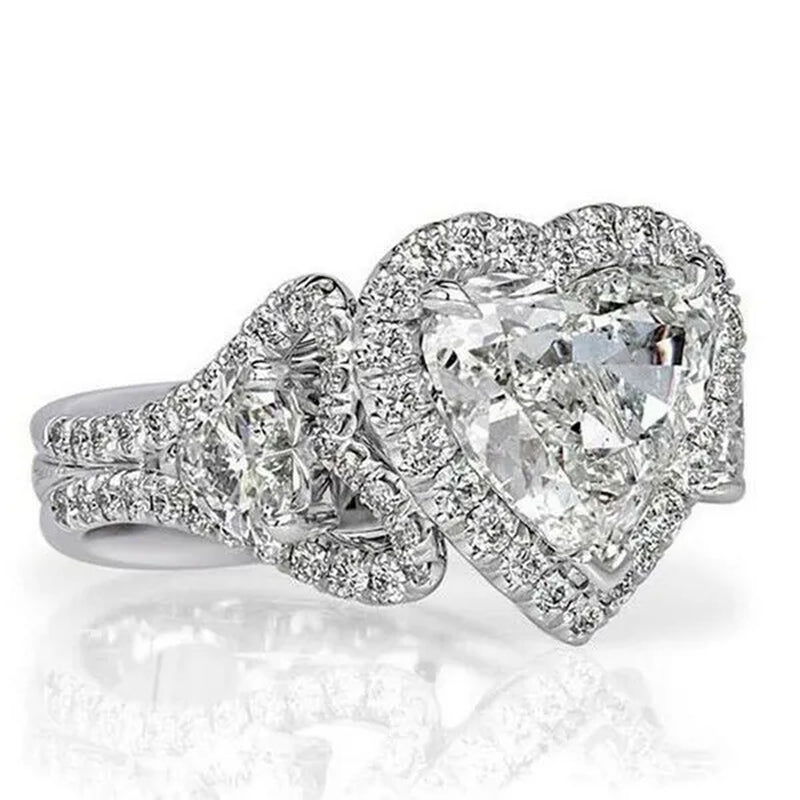 Gorgeous Exquisite Heart Rings for Women White Crystal Zircon Jewelry Fashion Bride Engagement Wedding Party Gift