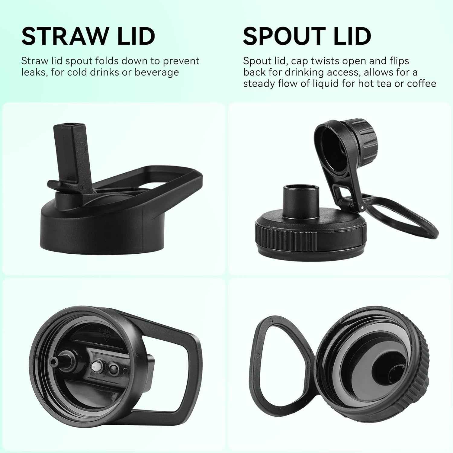 • Dual Lid Design: The bottle comes with two lids: the innovative leak-proof spout lid and the newly upgraded straw lid; The straw lid enhances flow for hygienic sipping; The wide-mouth lid is ideal for ice cubes and easy cleaning