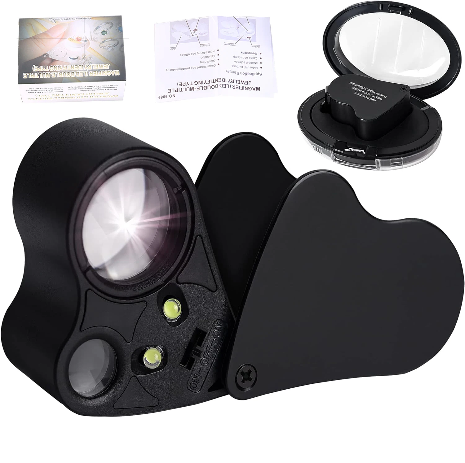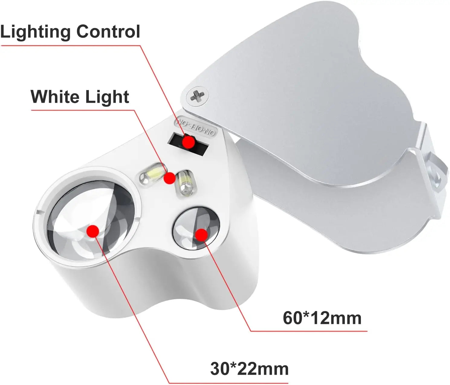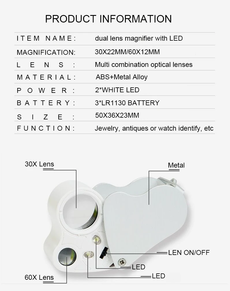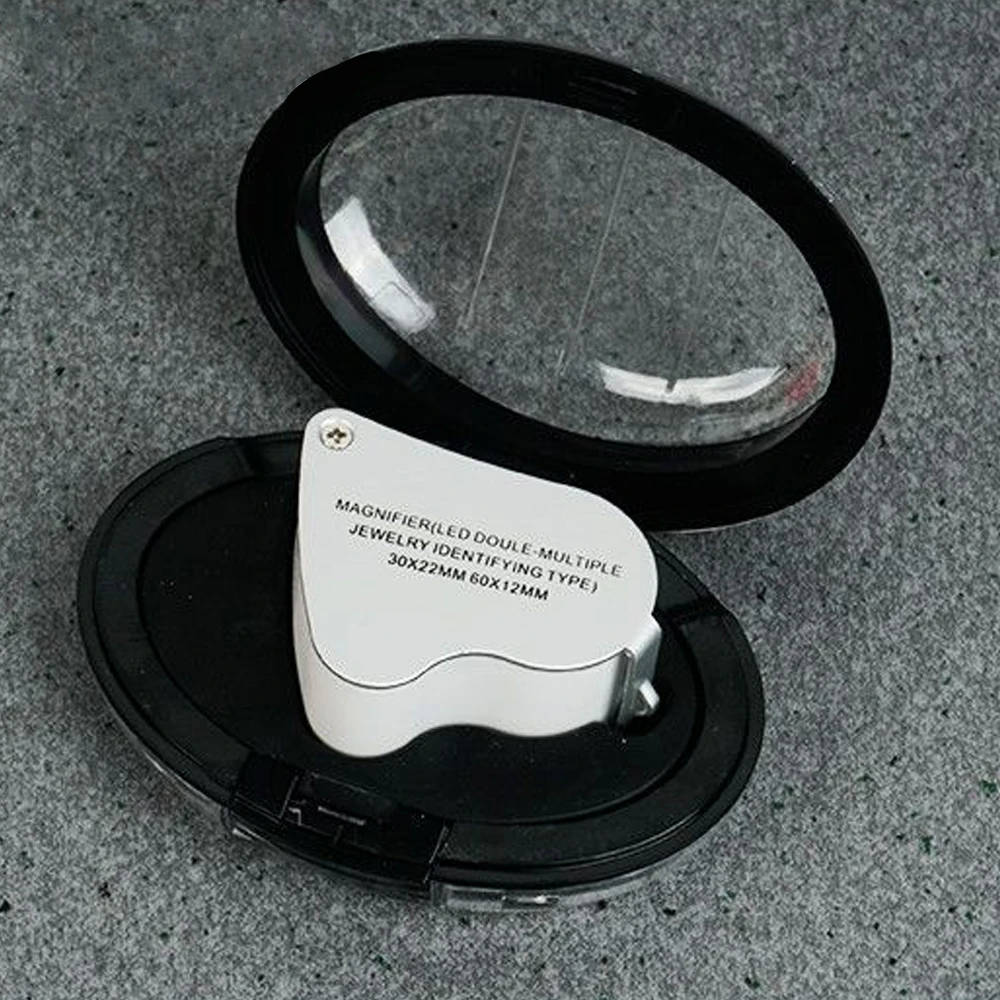 Jewelry Magnifier With Lights 30X 60X Magnification Magnifying Glass Portable Reading Pocket Magnifier Magnifying Loupe