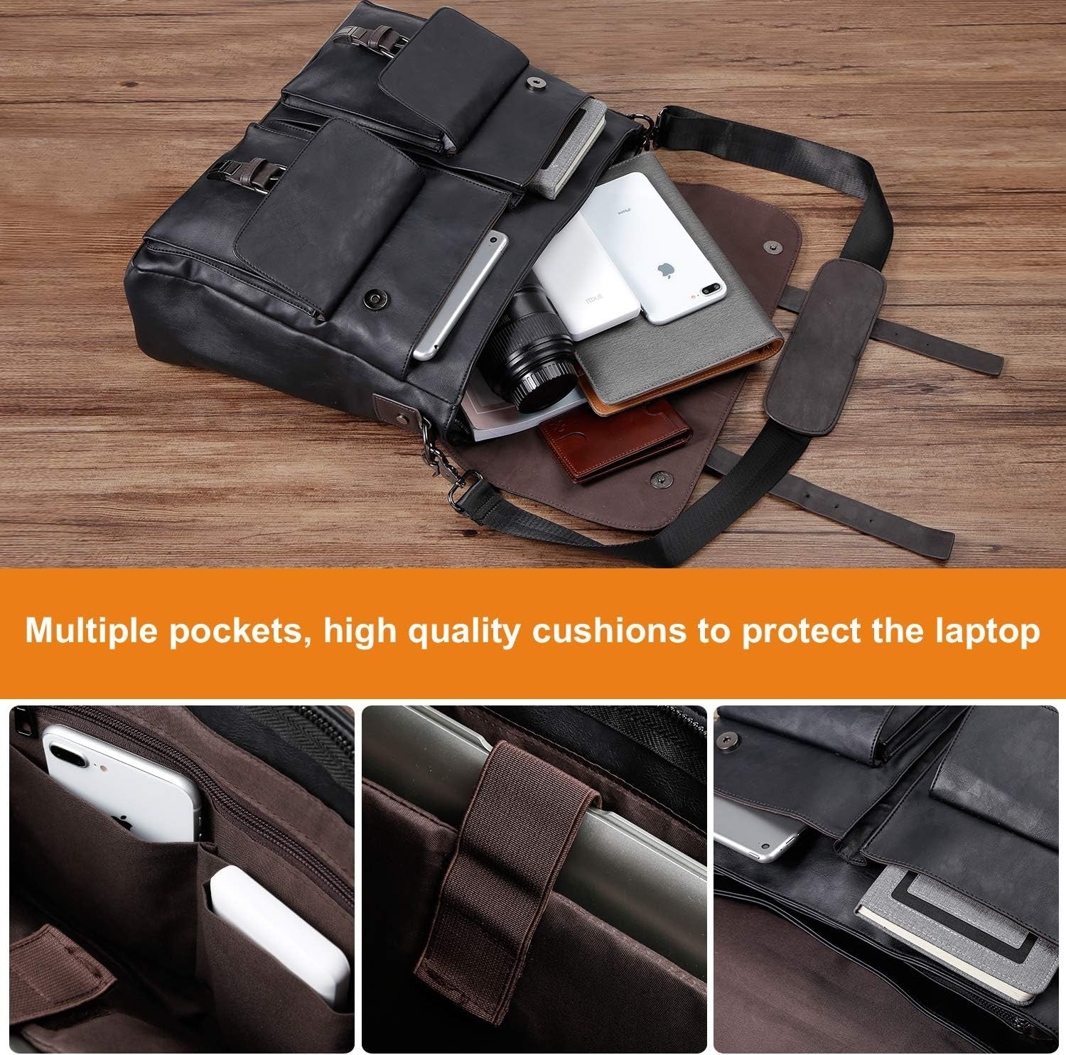 • Premium material: This large Messenger Bag is made of super quality water-resistant PU leather, With solid and sturdy hardware for zippers, buckles, closures and latches to ensure long lasting durability