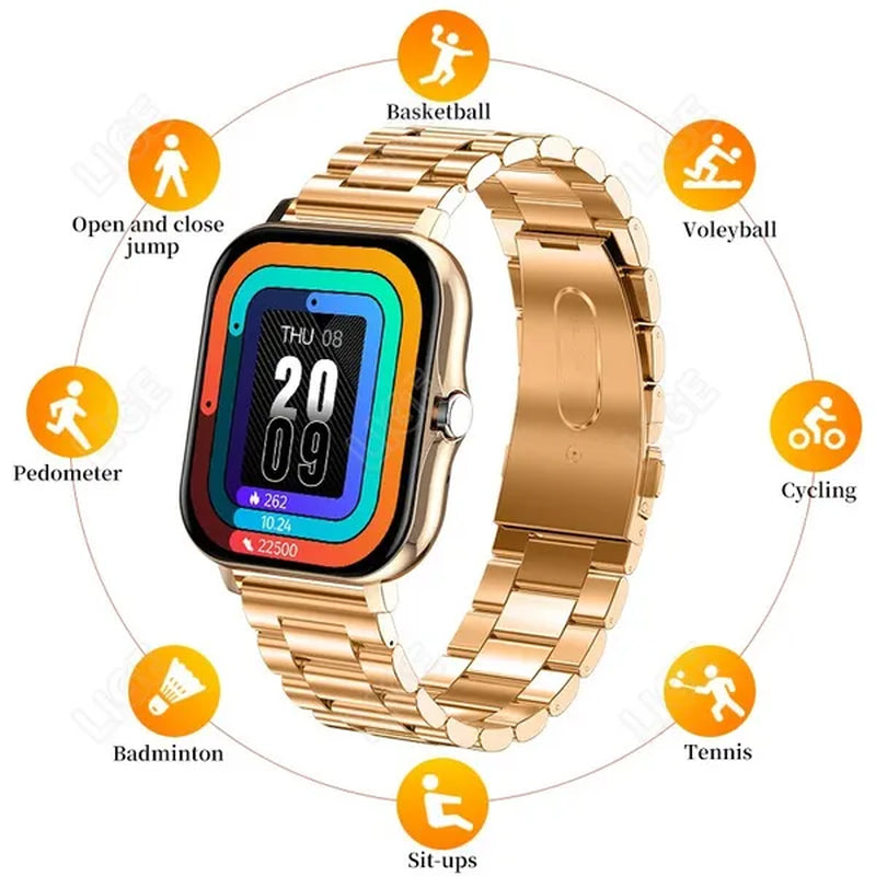 LIGE Smart Watch for Women and Men 1.69" Color Screen Full Touch Fitness Tracker Bluetooth Call Smart Clock Ladies Luxury Gold Smart Watch Relogio Smartwatch