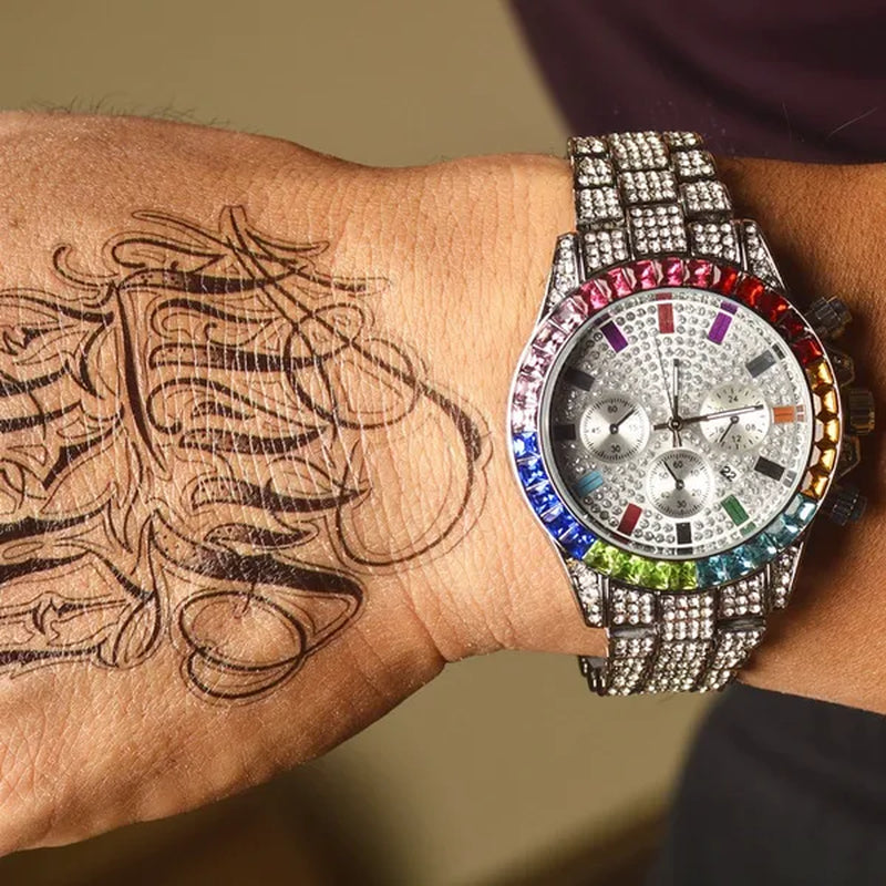 Men Watch Luxury Brand Mens Gold men Watch Quartz Clock Chronograph colorful Diamond Steel Iced Out Watch Reloj Hombre