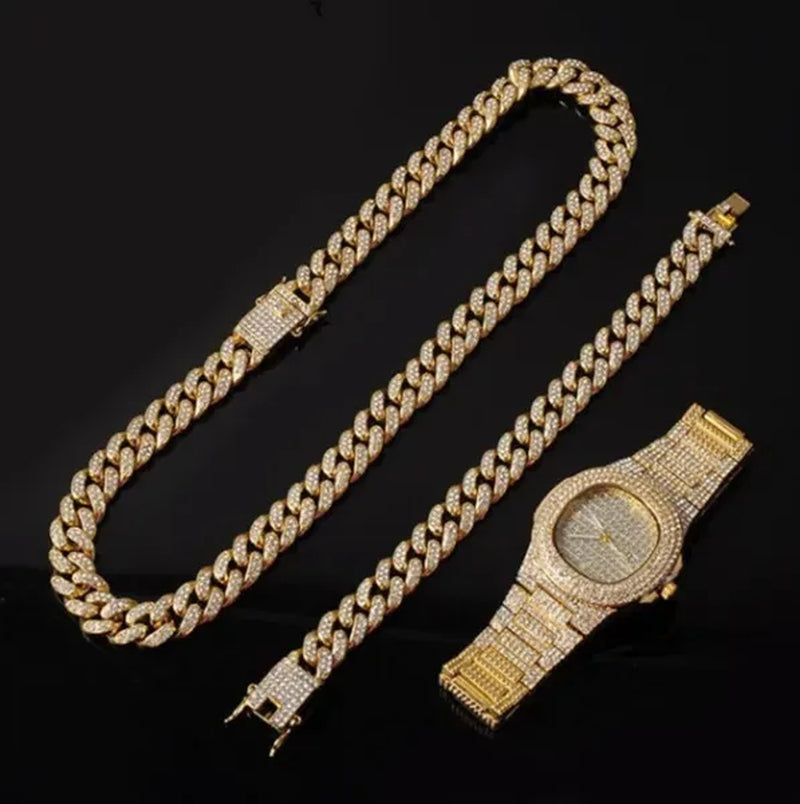 - Ladies/Men Chain Boy Necklace Bracelet Watch Jewelry Set