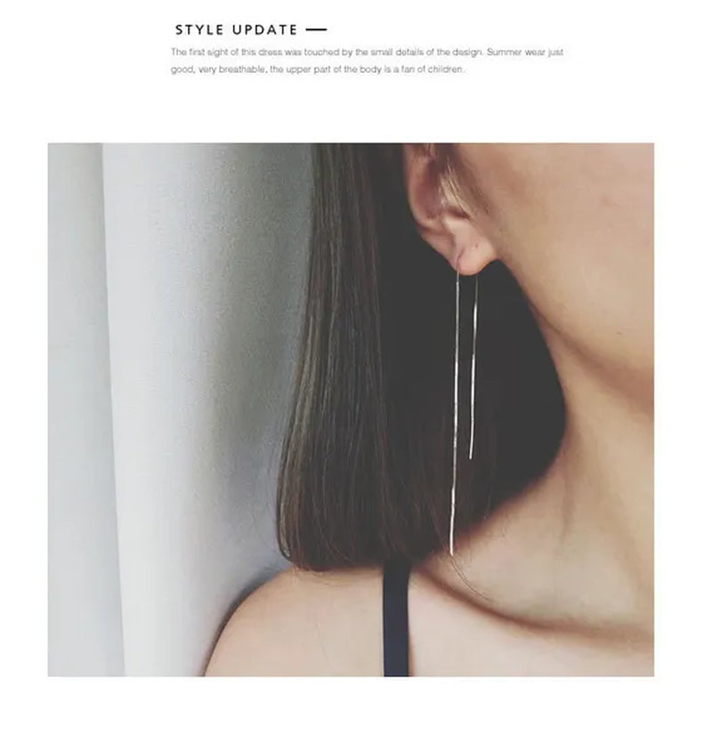 Minimalist Women's Earline Earrings silver-plated Long Chain Earrings, Women's Exquisite Silver Bar Earrings Valentine's Day Gift Engagement Wedding Earrings Gift Jewelry
