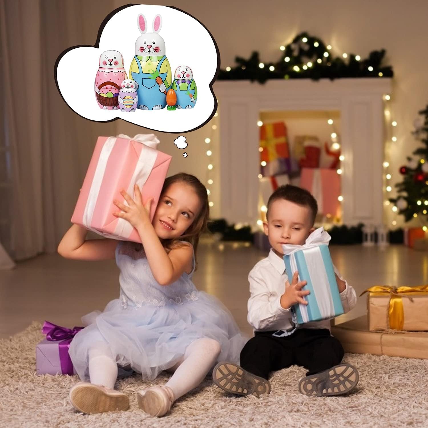 Nesting Dolls Russian Matryoshka Wood Stacking Nested Set for Kids Handmade Toys for Children Kids Christmas Birthday Decoration Halloween Wishing Gift