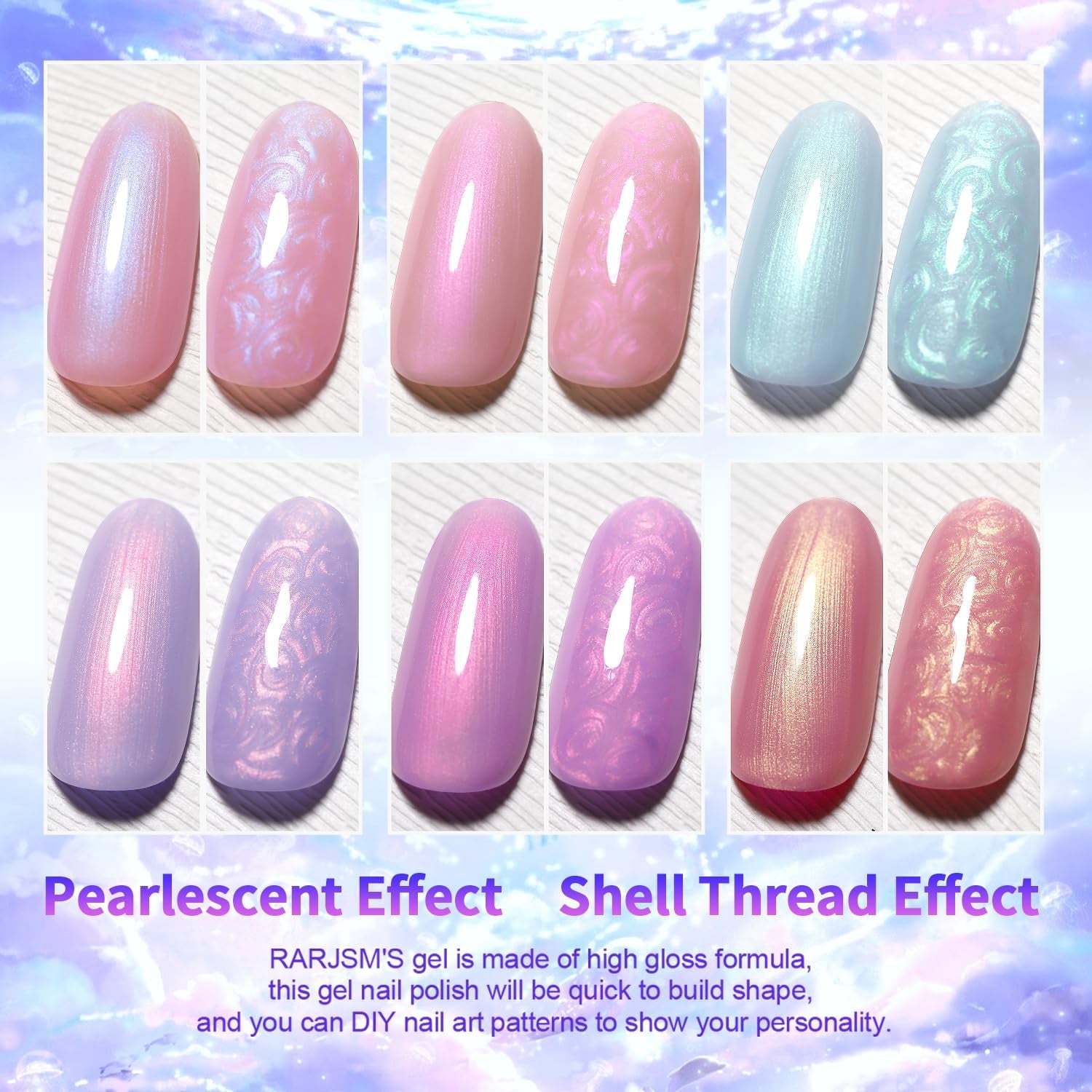 Pearlescent Gel Nail Polish Set Mermaid Dreams Iridescent Shell Glitter Gel Polish 6 Colors Pink Blue Green Purple Gold Shimmer Swirl Thread Effect Soak off LED UV Curing Requires Home Salon