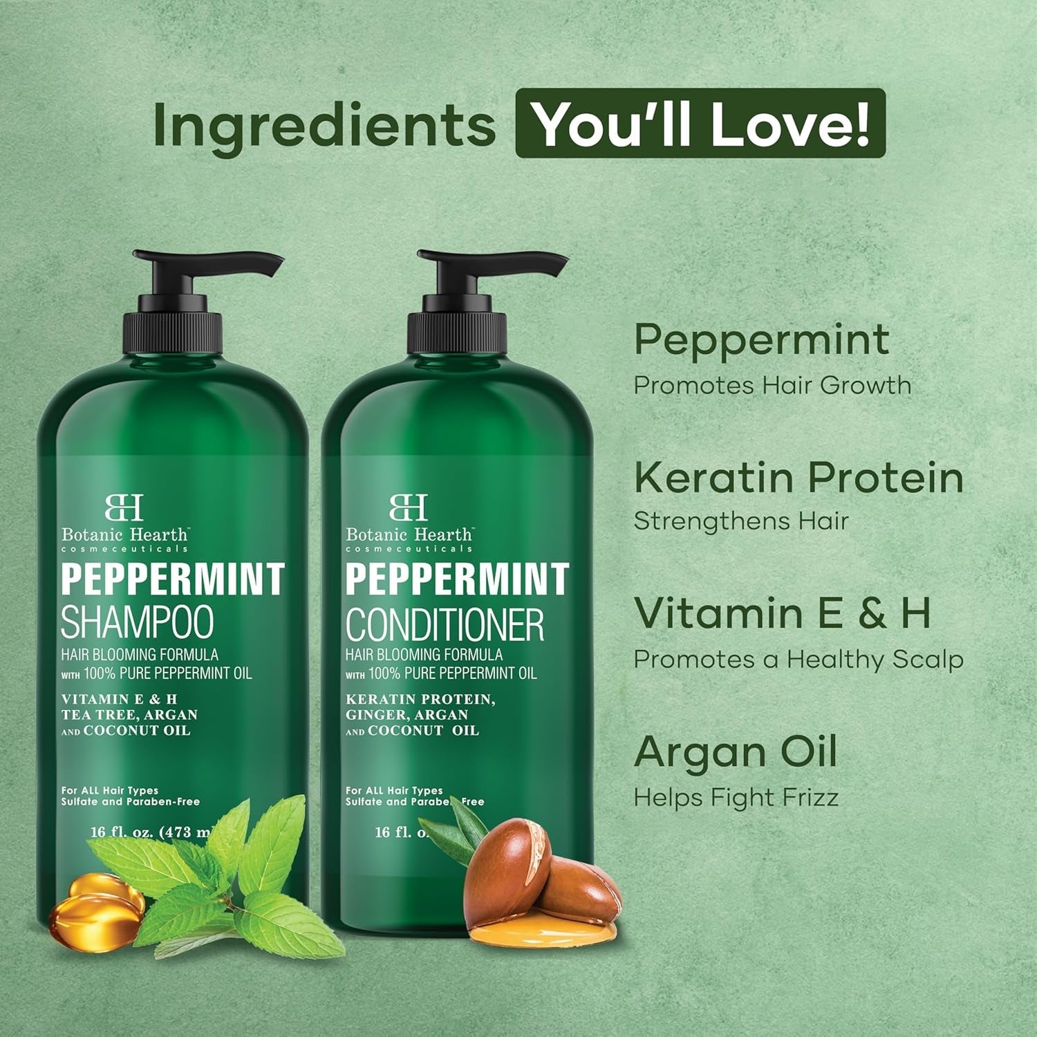 • Botanic Hearth Peppermint Shampoo and Conditioner Set, made with 100% pure peppermint oil, Sulfate & Paraben Free, made in USA