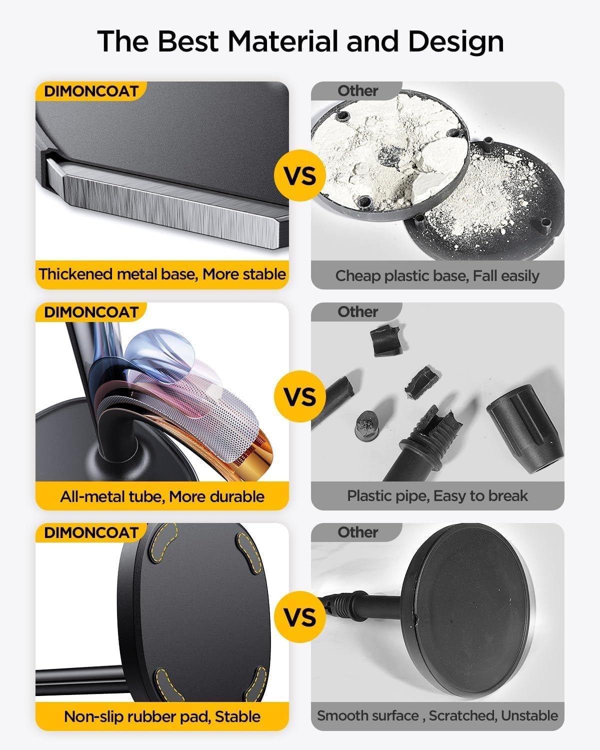 • UPGRADED SILICONE CLIP, THICK CASE FRIENDLY: DIMONCOAT iPhone holder for desk upgrade silicone clip, It completely solves the problem that the traditional phone holder stand is easy to fall and break the phone. This cell phone holder work for phone with thick case up to 0.75 inches thick. The enlarged & thickened anti-slip & anti-scratch silicone mats on the clamp protect your mobilephone from sliding and scratching. Durable materials and the high-precision smooth surface prevent this phone stand from scratch and break even after long-term use.