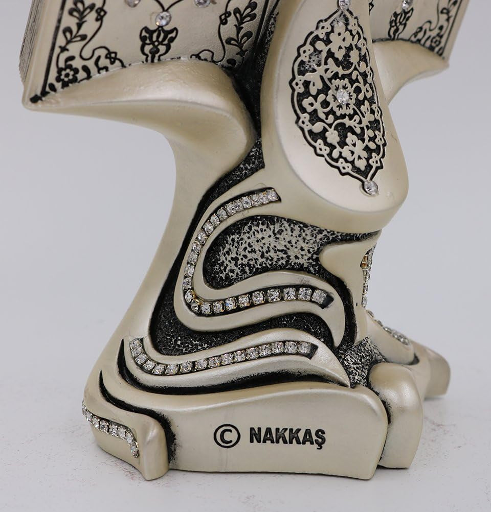 Beautiful Islamic Home Decor Gift Showpiece! Features a book representing the Quran open, with Ayatul Kursi and Nazar dua inscribed within. Beautiful detailing with faux crystal stones. Due to the manufacturing process and hand-finished detailing, this item may have minor imperfections.
