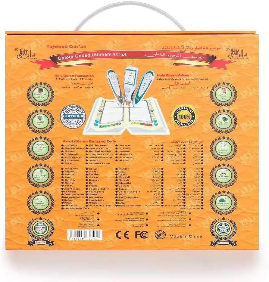 • ★【Multi functional】The Quran reading pen can Read / Record / Repeat and Translate. Built-in complete voice recitations of Holy Quran by Al-Afasy, Ajmi, Abdul Basit, Al-Meaqli and Aya. Freely Switch among reciters and translations; Due to limited memory, default voices are Arabic, English, Urdu, French.