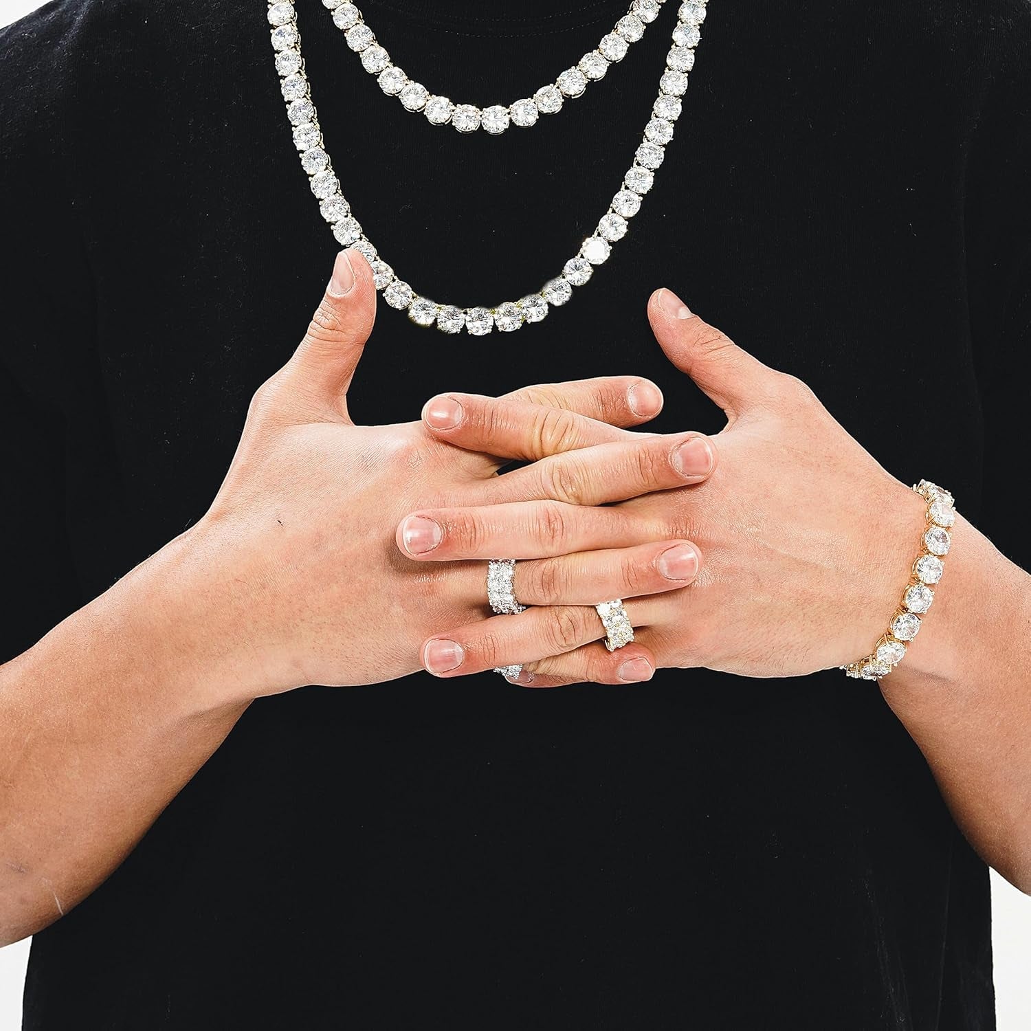 Rings for Men - Men'S 14K Gold Plated Brass, Chunky Faux Diamond Band Ring for Women, Unisex, 9Mm - 2 Rows round Cubic Zirconia Eternity