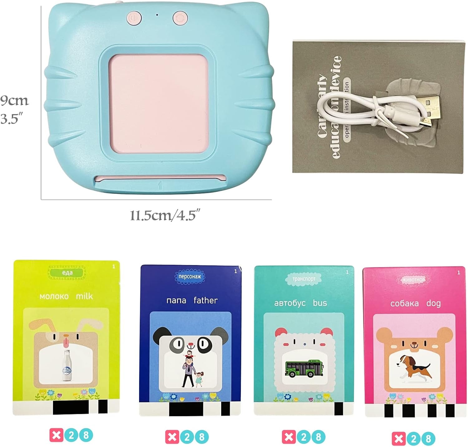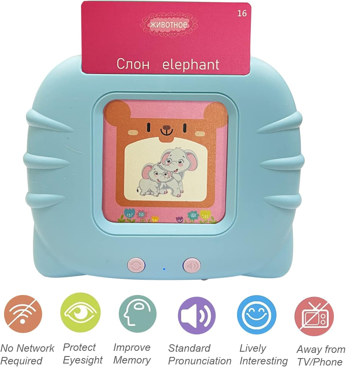 • Toddler Russian Learning Toys - This speech therapy toy includes a card reader and 112 double sided flash cards covering 12 subjects like shapes, colors, animals, daily necessities, transports, food, fruits, vegetables, costumes, nature, persons & jobs. Great learning toy for 3 year olds and up to learn sight words, enhance cognitive ability, exercise hearing and build vocabulary. Great autism sensory toys for autistic children