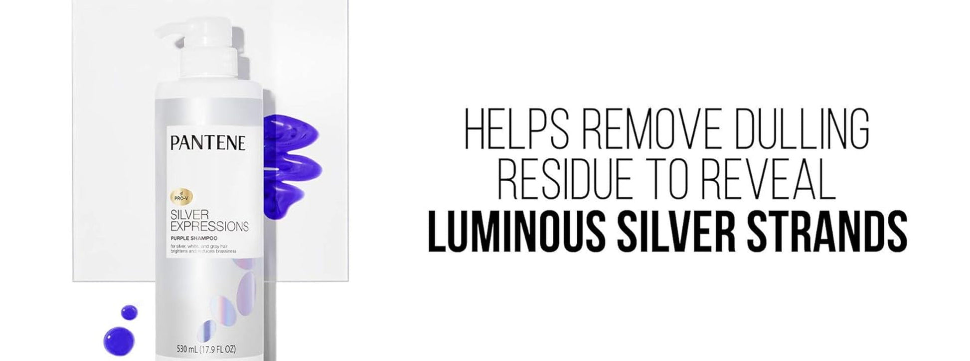 Want more silver and less gold? The Pantene Pro-V Silver Expressions Purple Shampoo you love is back with a brand new look. This purple-pigmented cream reduces dullness*, giving you a brighter, more toned look. Purple can color-correct or neutralize excess yellow, bringing back your original tone. After youve finished blaming sunshine, pool time, and even your tap water for adding brassiness, pick up your purple shampoo. It works wonders for gray, white, and silver hair. Lather up daily, or as you see fit, always making sure to leave it in for 3-5 minutes for the best results. Meanwhile, enjoy the luxurious scent of lotus flowers. Now you're on your way to another #greathairday.