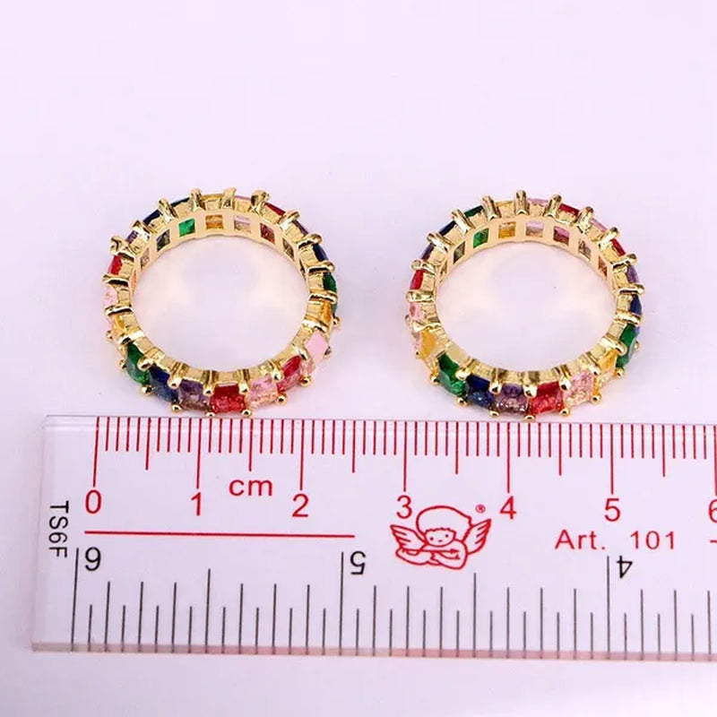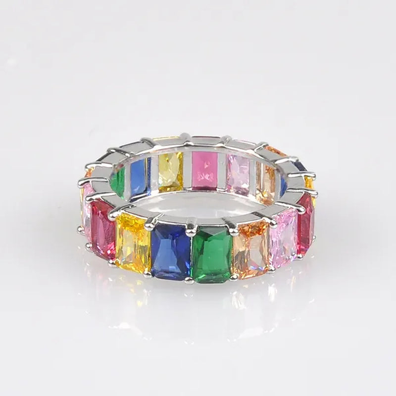 Silver Ring Colored Square Rainbow Ring...