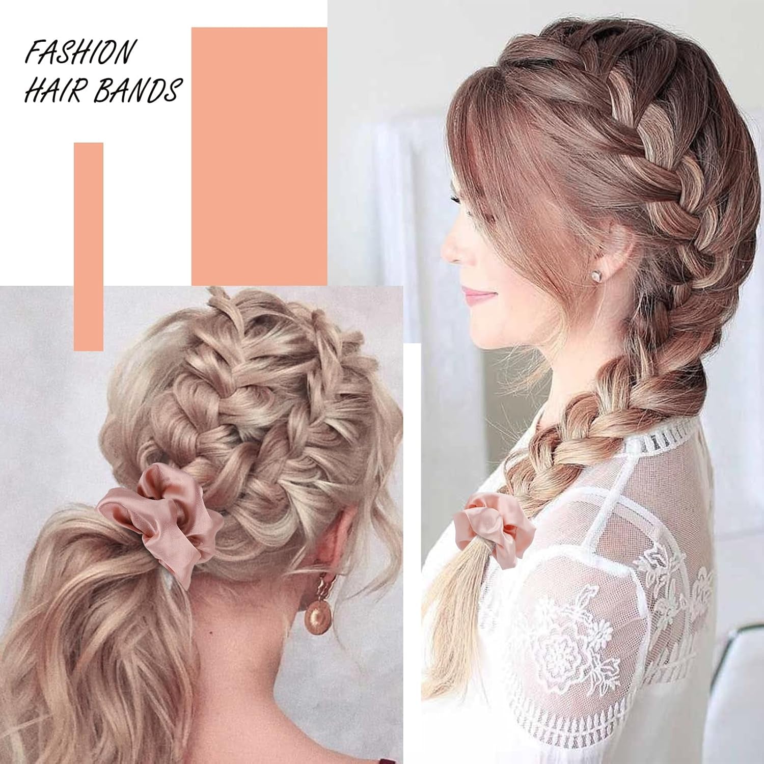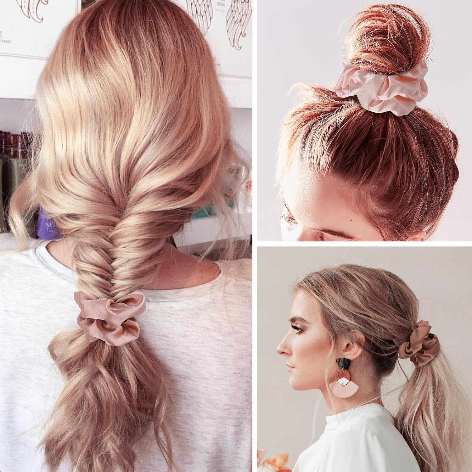 • Color for Blonde Hair: We selected 3 colors for the blonde crowd, the color is natural, not bright, after many model tests, these scrunchies and different shades of blonde hair match very well, look natural and comfortable.
