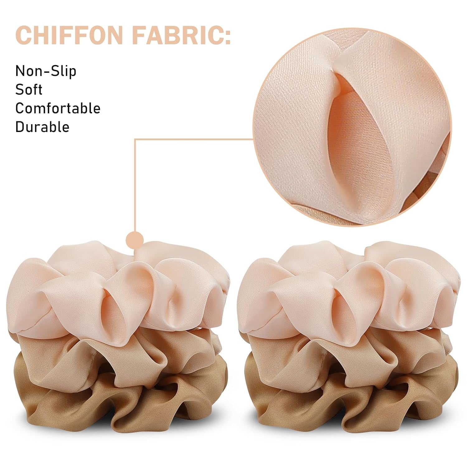 • Premium Quality Material: Our 6 pack hair scrunchies are made of premium Satin fabric. After softening treatment, will not pull hair, do not hurt hair, for women's life to bring comfortable experience.