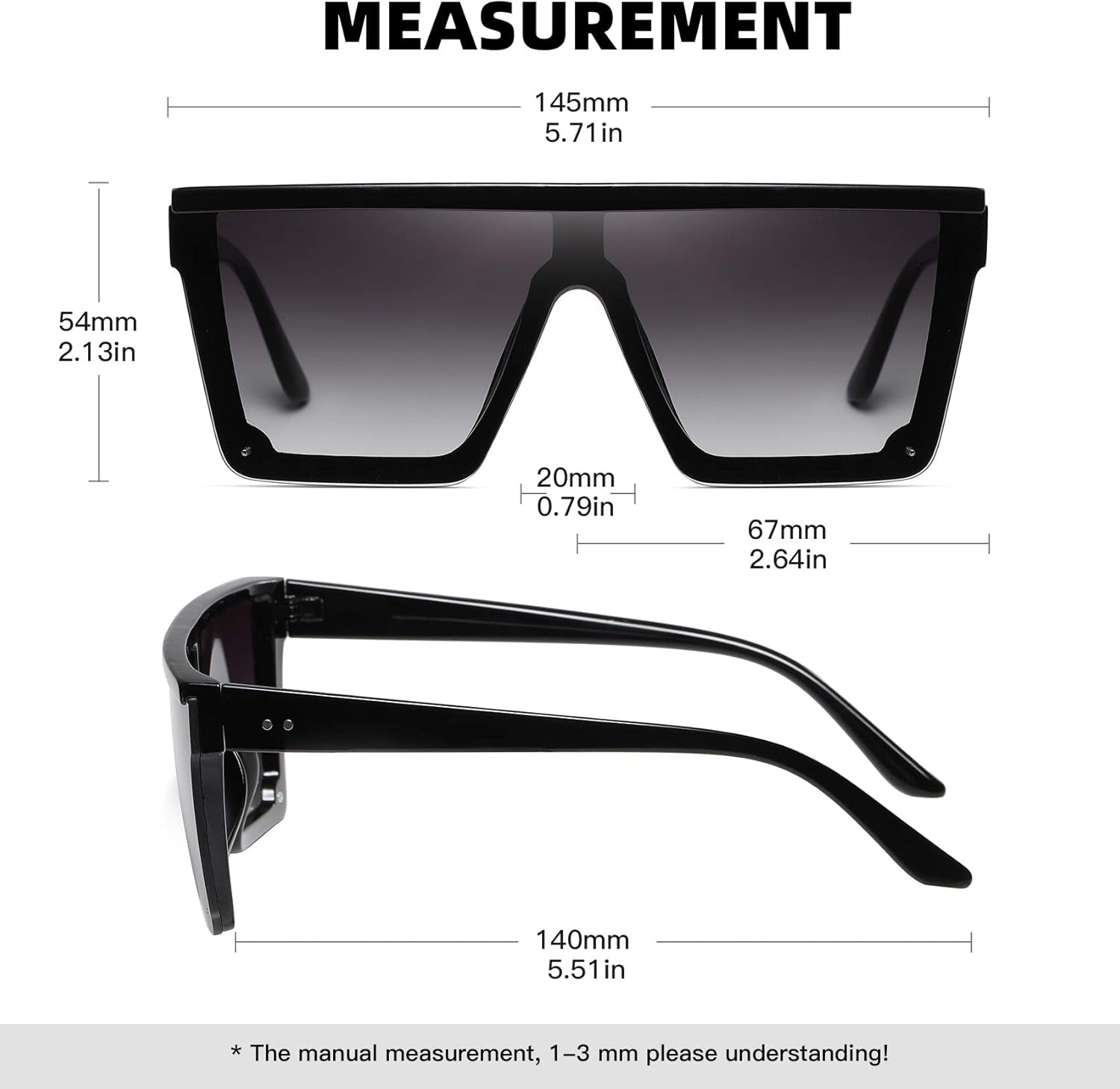 Square Sunglasses for Women Men Fashion Big Frame Flat Top Sun Glasses Mirror Lens