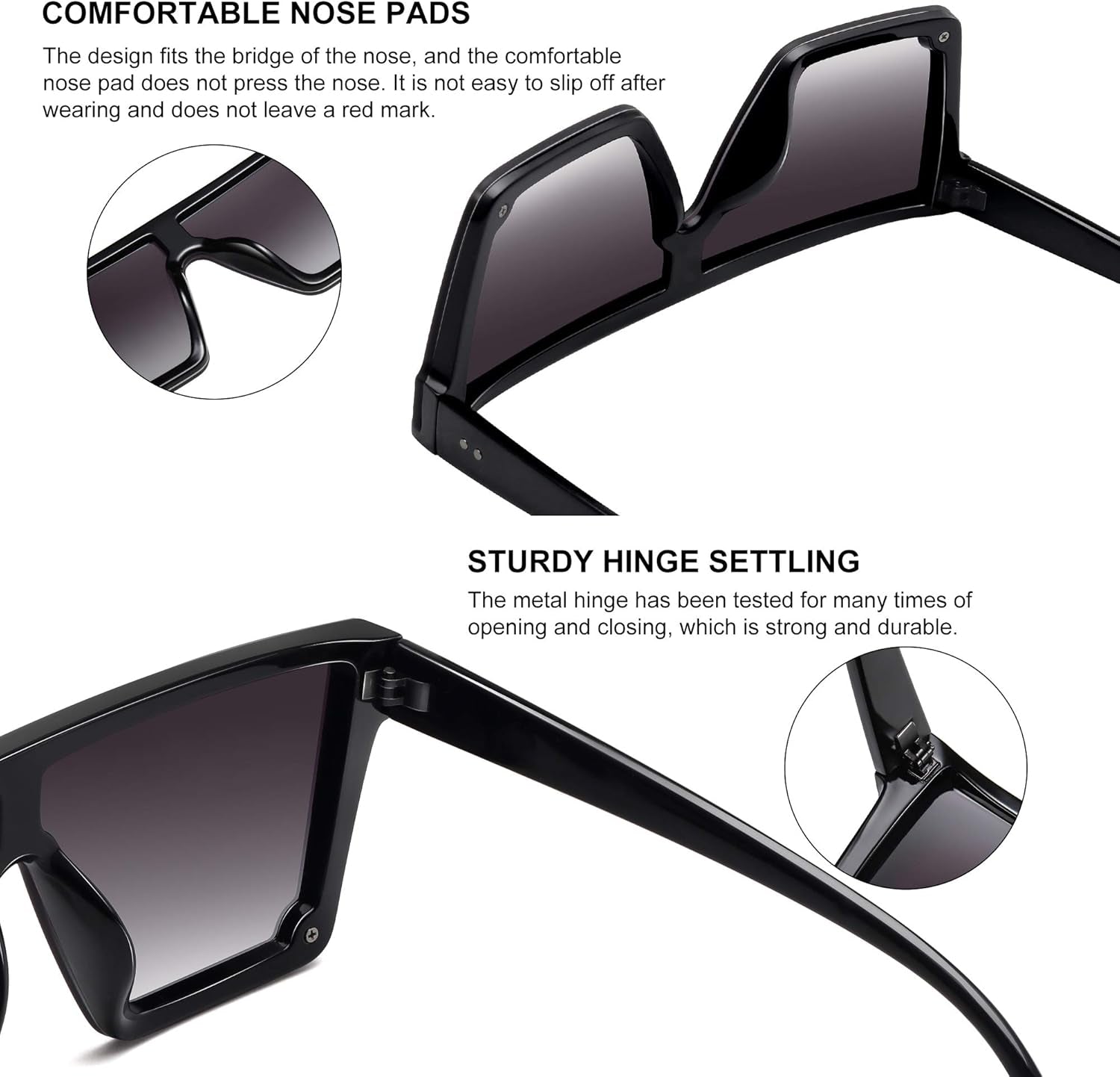 Square Sunglasses for Women Men Fashion Big Frame Flat Top Sun Glasses Mirror Lens
