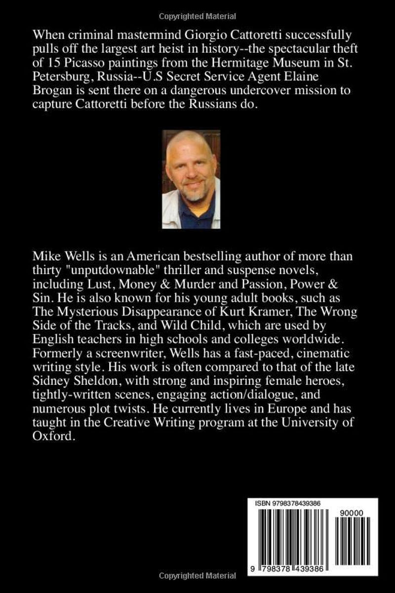 When criminal mastermind Giorgio Cattoretti successfully pulls off the largest art heist in history--the spectacular theft of 15 Picasso paintings from the Hermitage Museum in St. Petersburg, Russia--U.S Secret Service Agent Elaine Brogan is sent there on a dangerous undercover mission to capture Cattoretti before the Russians do. Note: This book was previously titled: Lust, Money & Murder, Book 5 - On Russian Soil "Fast-paced and packed with unpredictable twists and turns written in Mike Wells' "unputdownable" style, this fifth installment of the Lust, Money & Murder series delivers in spades." Graham Pritchard, Author & Book Reviewer, Syracuse, NY USA "What a fantastic book! Mike Wells did it again. This nove has everything: a spectacular crime, danger, friendship and much more! Highly recommended." Lady M.K, Canada (Ontario) "If you had plans for the weekend - cancel them! The story is so gripping you won't be able to put this book down. Not only you will feel like you are On Russian Soil, but you will feel like it is you who is in charge of catching the criminal and escaping the villain. I felt exhausted and exhilarated when I finished the story! Can't wait for Book 6!" - Lizzie, S.F. California "The book is technically accurate and well-researched, but what makes it exiting is the human element. The characters act in a believable way and their motivations are solid. I swallowed the book almost all in one sitting." -Barry L., St. Louis THE SHOW ME STATE.