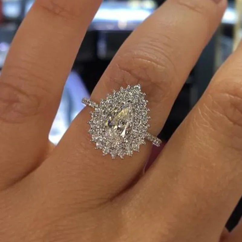 Trendy Wedding Pear Rings 925 Sterling...