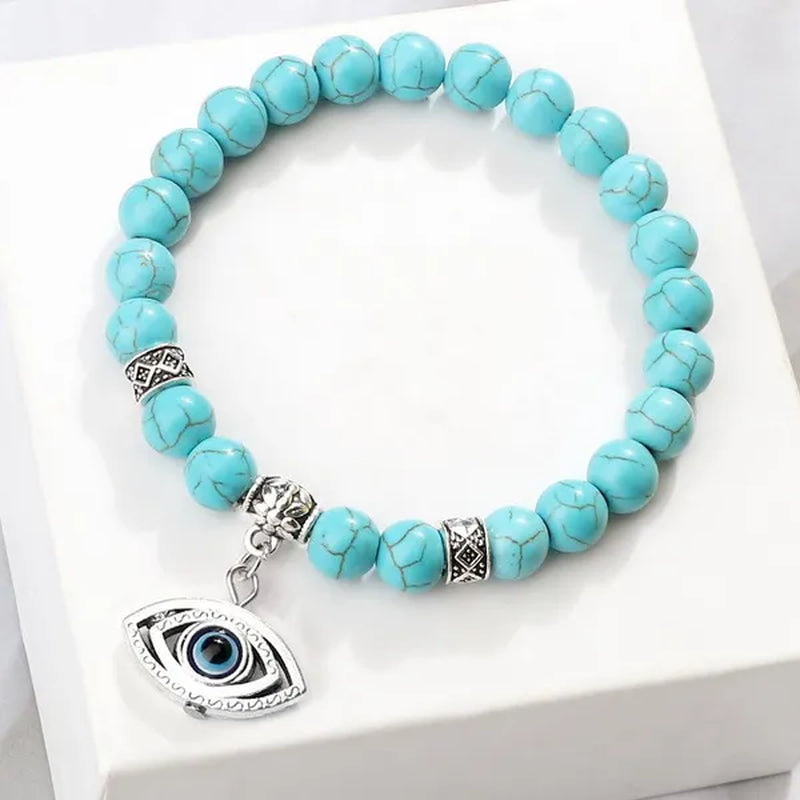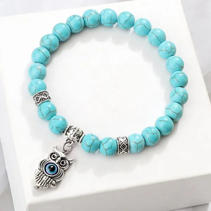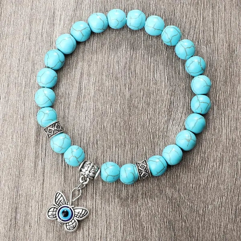 Turkey Evil Eye Beaded Bracelets Butterfly Buddhist Palm Hand Owl Turtle Alloy Pendant Bracelet Women Men Lucky Stretch Bangles Jewelry