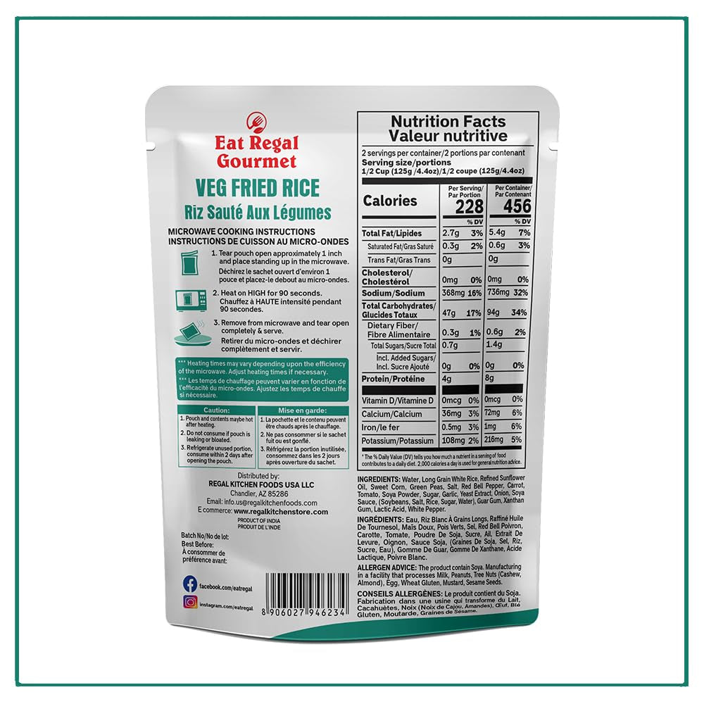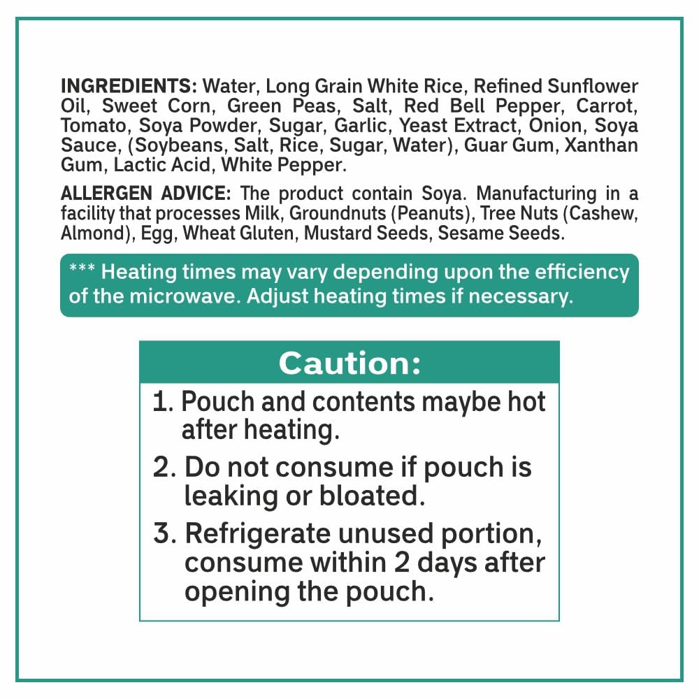 • Quick Meal, Ready to Serve in Minutes: Instant Veg Fried Rice comes packaged in multiple microwavable packets so within minutes, this meal can be served making it ideal for busy people or time constraints.