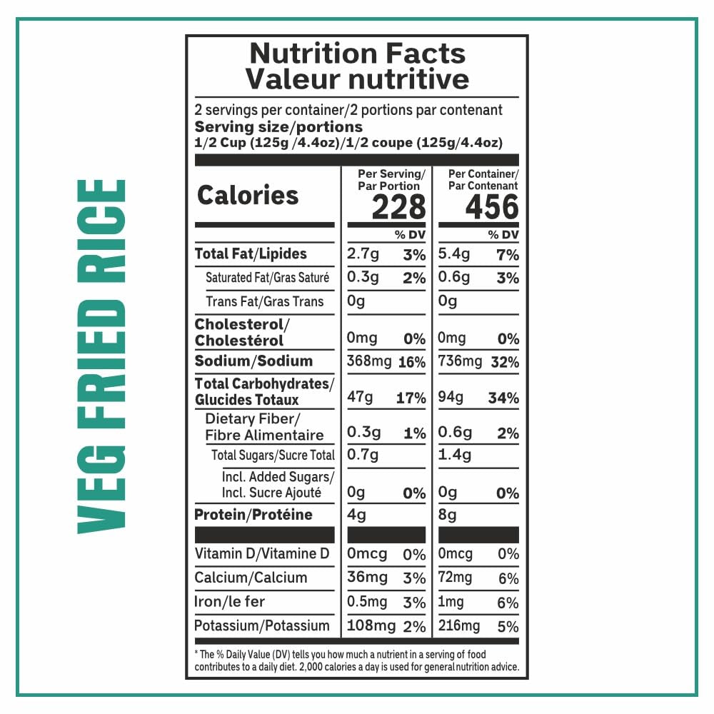 • Must be Suitable for Healthy Diet: This Veg Fried Rice is low in sodium, cholesterol free and vegetarian, hence, suiting a healthy nutrition lifestyle or particular diet.