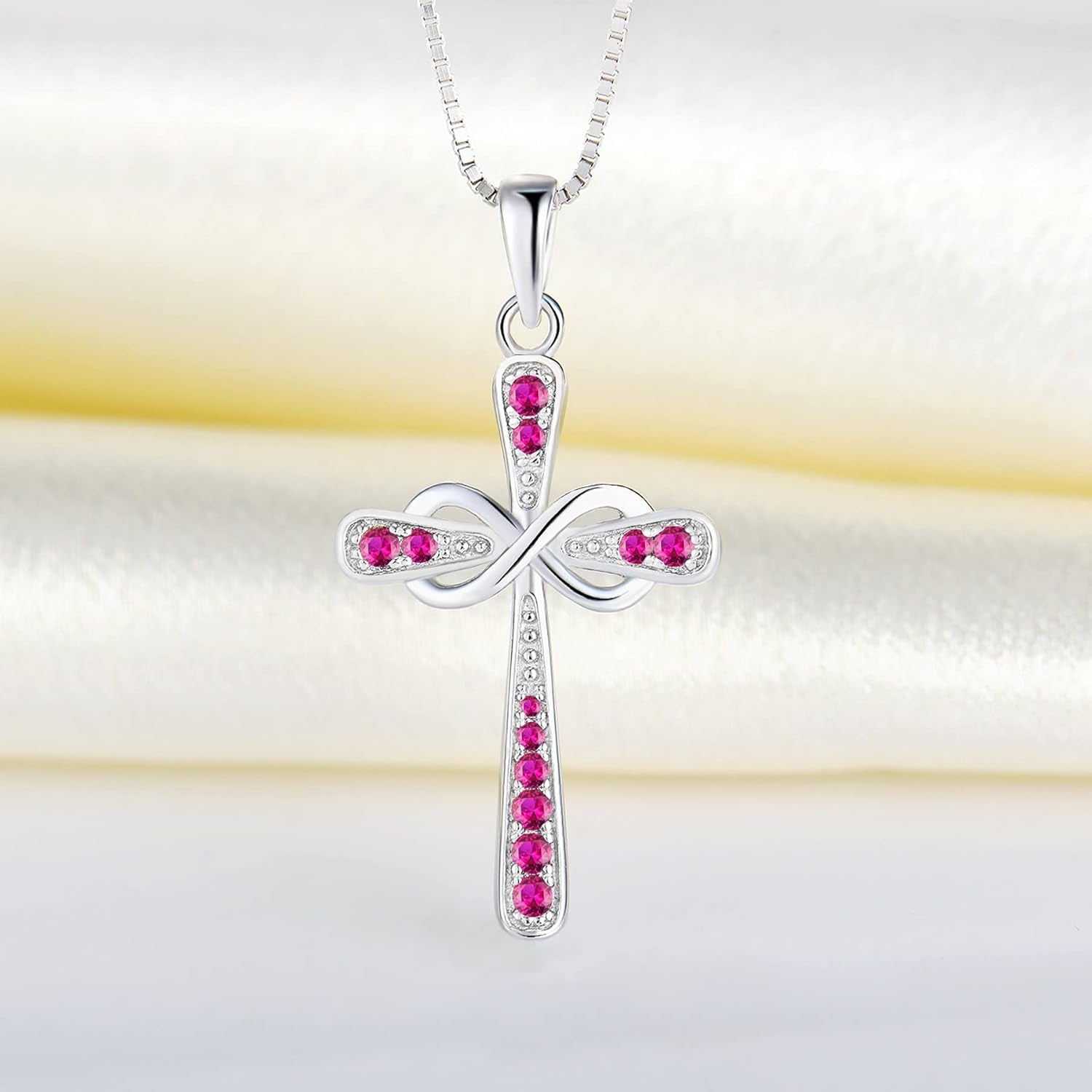 Women'S Cross Necklace 925 Sterling Silver Infinity Pendant Birthstone Criss Jewelry