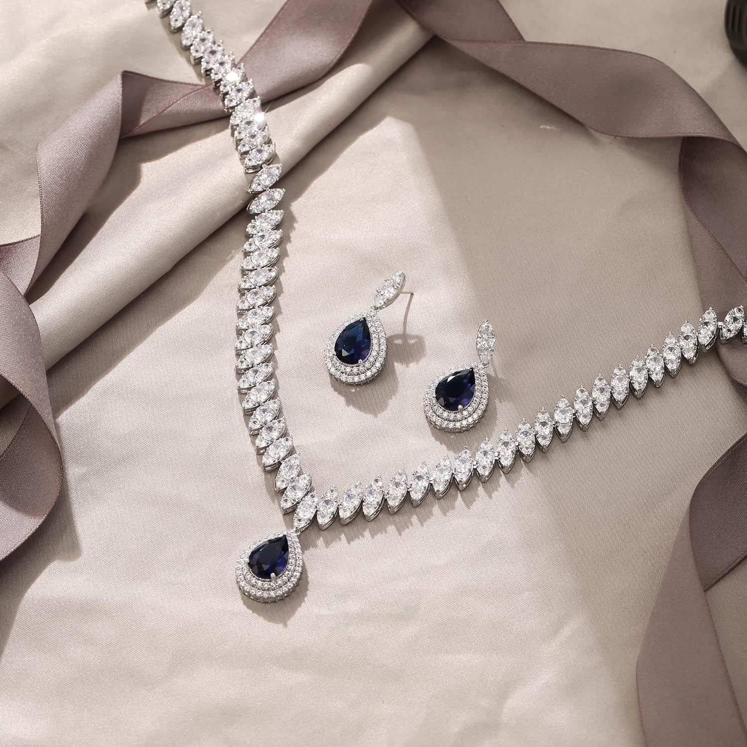 Women'S CZ Marquise-Shaped Leaf Teardrop Pendant Necklace Earrings Set Silver-Tone