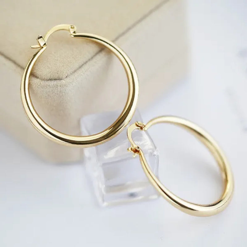 Fashion simple women's 18K Gold Earrings Large Round Earrings exquisite diameter 33mm Round Earrings for Princess Party Wedding Engagement Christmas jewelry gifts