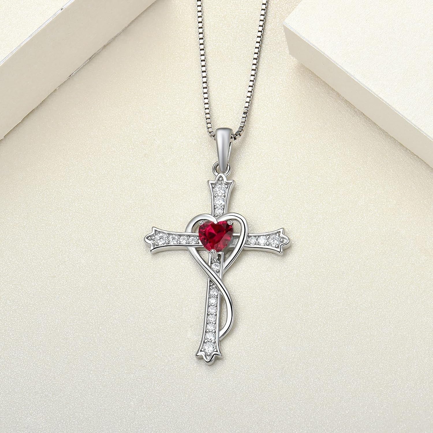 Women'S Heart Cross Necklace 925 Sterling Silver Cubic Zirconia Knot Pendant Crucifix Jewelry for Women