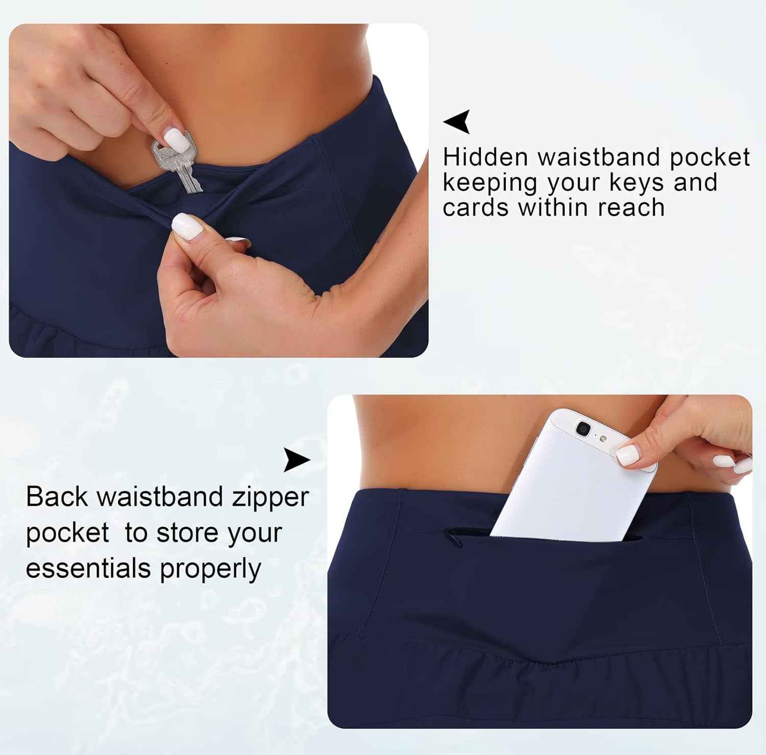 Womens High Waisted Running Shorts Quick Dry Athletic Workout Shorts with Mesh Liner Zipper Pockets