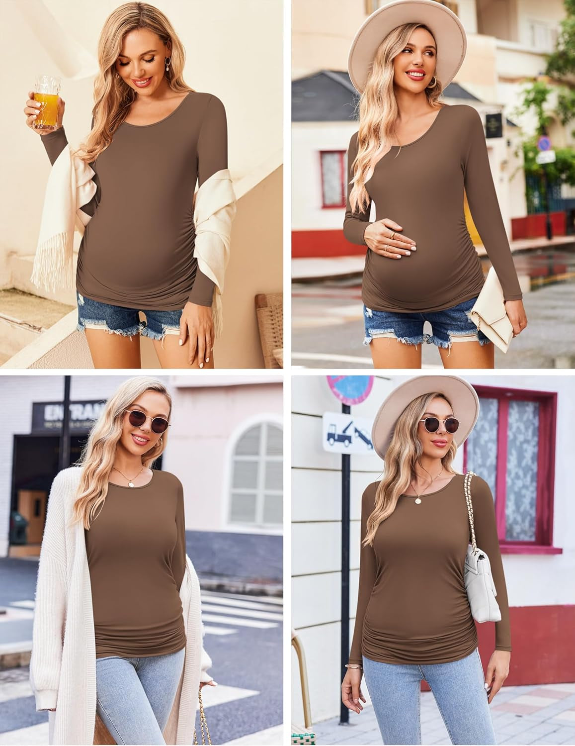 The side ruched design provides enough space for the growing belly at every stage. Easy to match with jeans,leggings or shorts for daily wear.