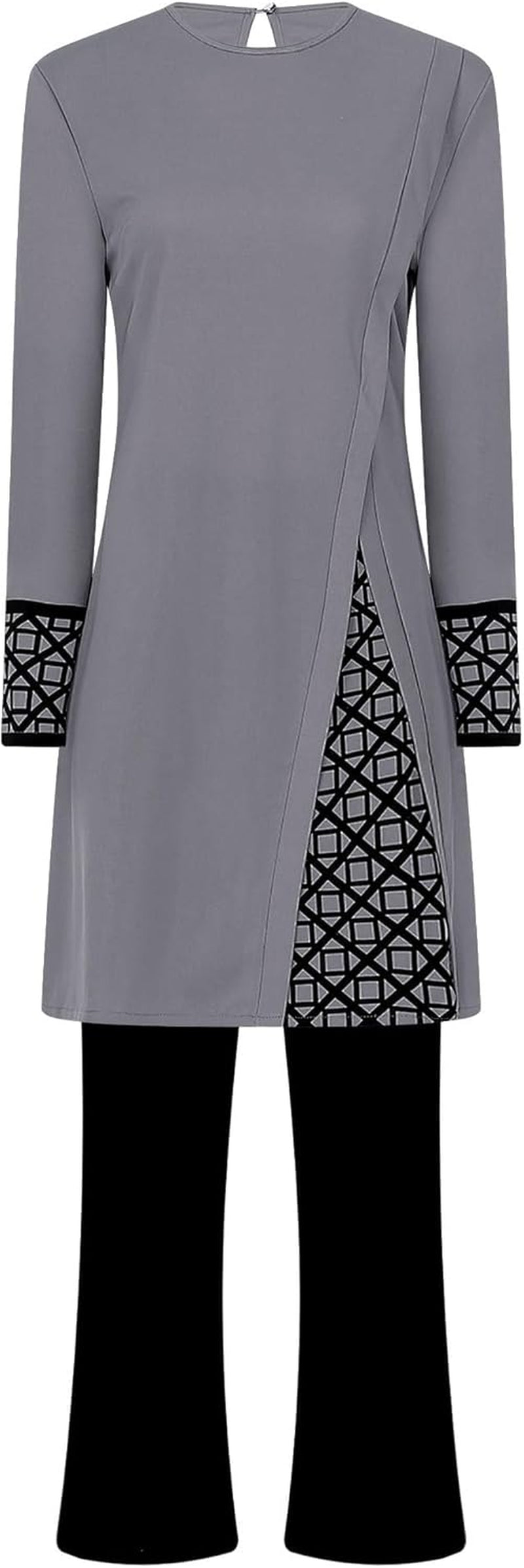 Womens Muslim Abaya 2-Piece Suits Long Sleeve Robe with Pants Outfit Islamic Prayer Clothes Sets