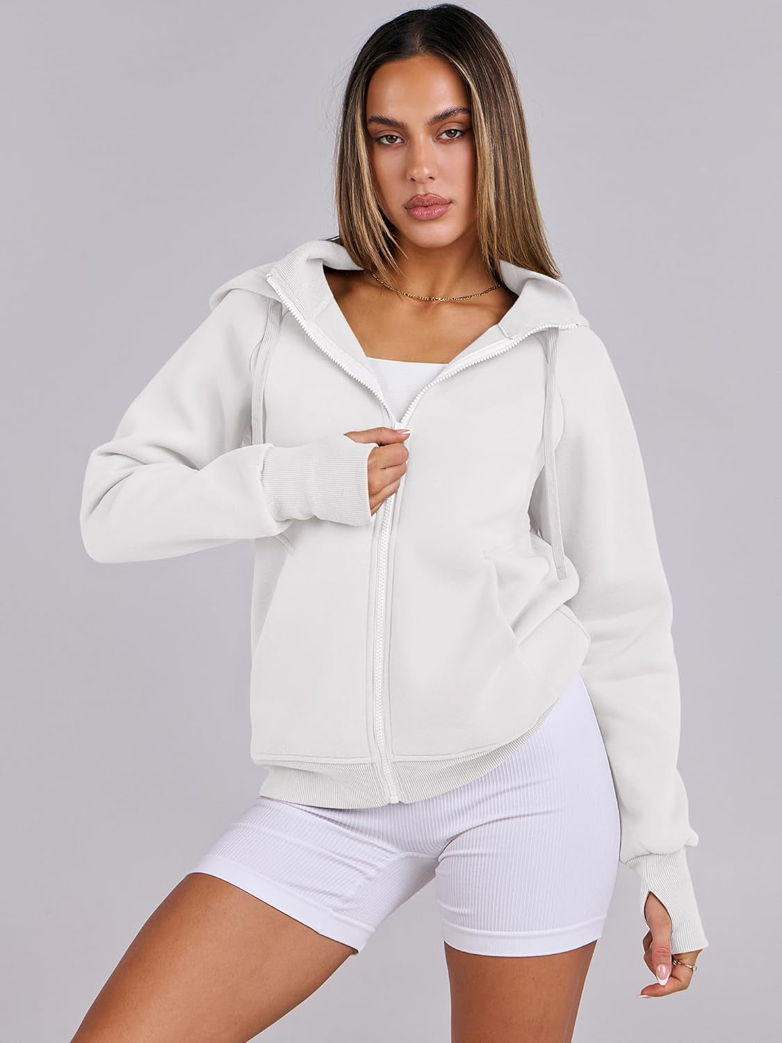 Womens Zip up Hoodies Fleece Jackets Long Sleeve Sweatshirts Pockets Casual Fall Fashion Preppy Outfits Y2K Clothes