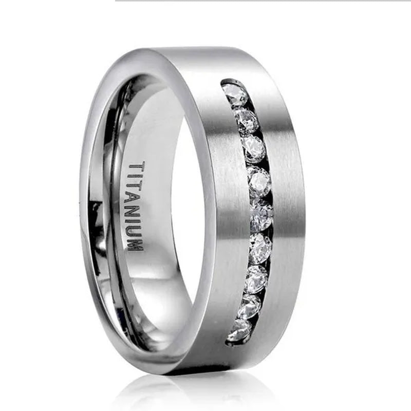 All rings are U.S.A size rings. Please look at photo of chart for the equivalent international sizes. Species:Ring Material: Titanium (male) WHITE Gold Filled(Female) Style: Wedding Ring Sex:Women and men Color:White High quality in EU and US quality standard